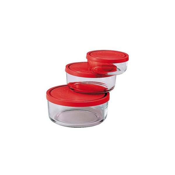 SET 3 RECIPIENTES REDONDOS CON TAPA ROJA GELO